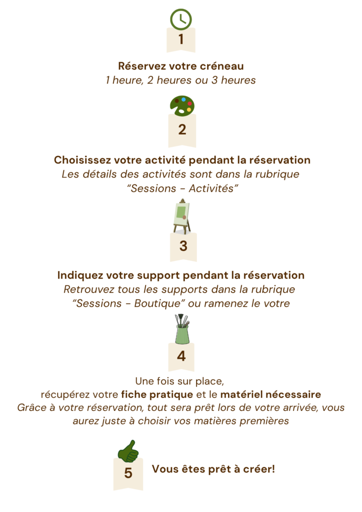 Pendant 1h, 2h ou plus, venez passez un moment seul(e) ou en famille autour d’une activité créative.