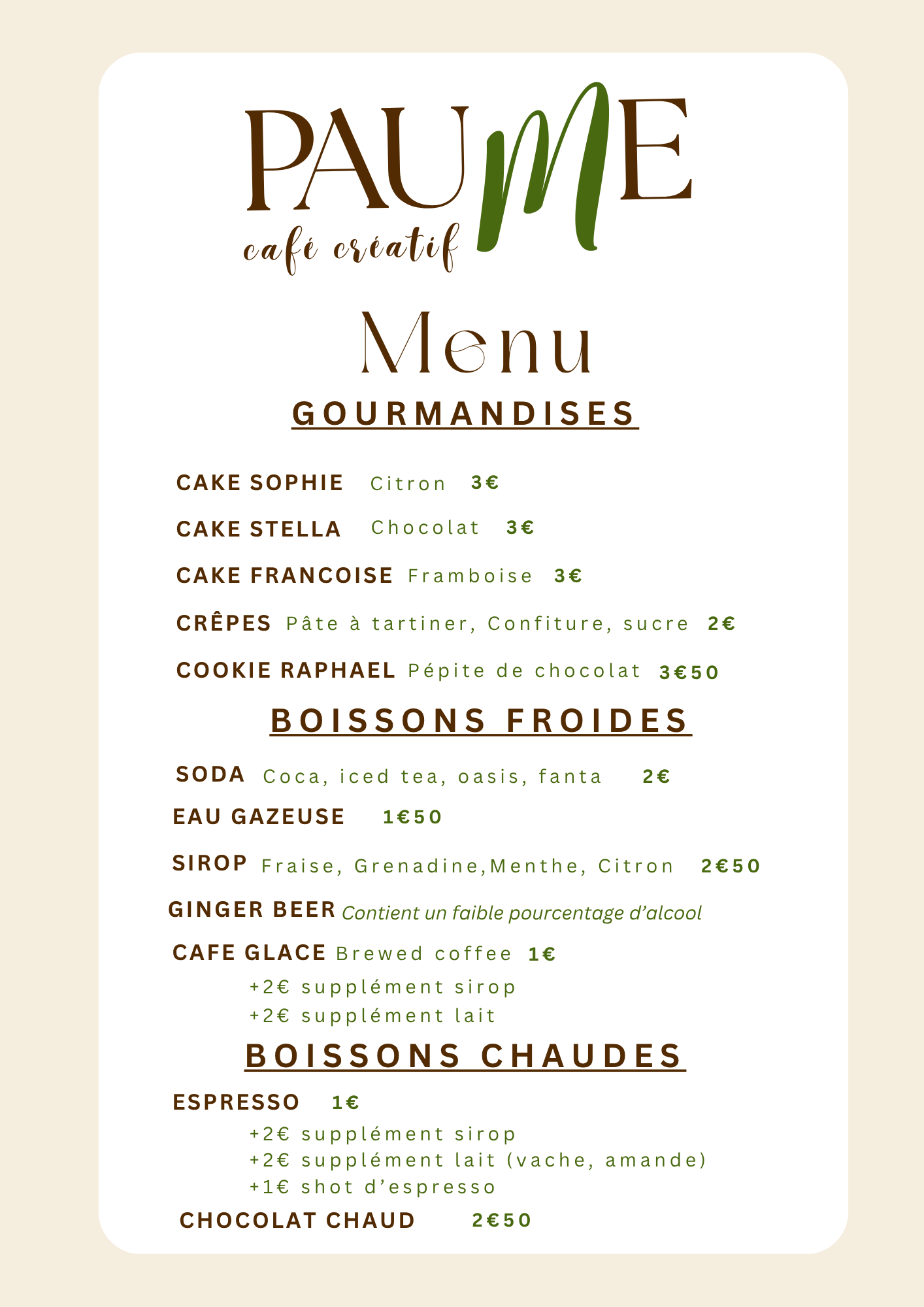 Pendant votre session libre ou guidée, vous pouvez déguster une boisson chaude, froide et/ou un snack sucré.